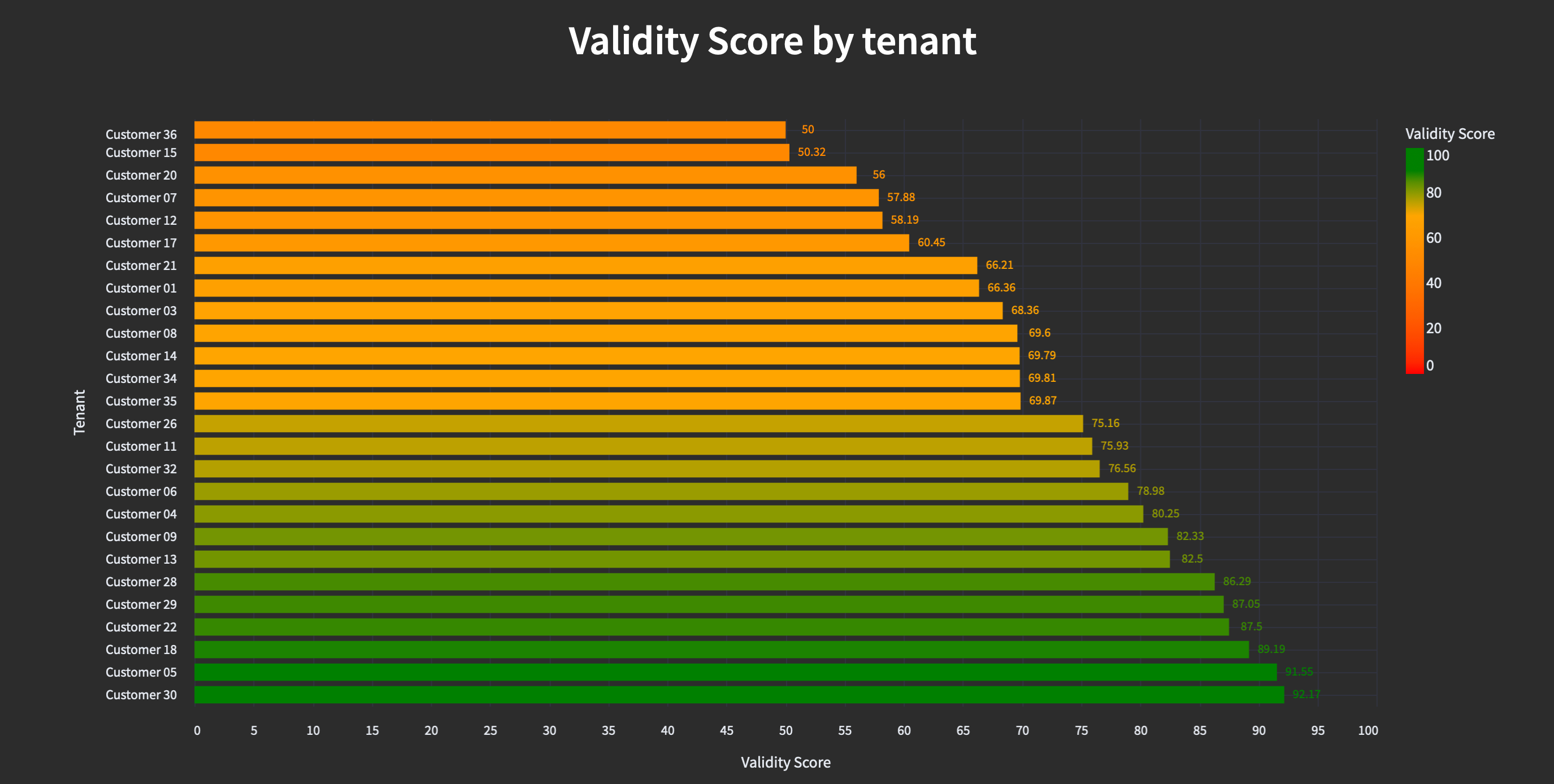 We can see that about 1% of the data provided by customer is considered in error starting on January, 9th 2025. And that the validity score actually is very stable after activation of the data quality check